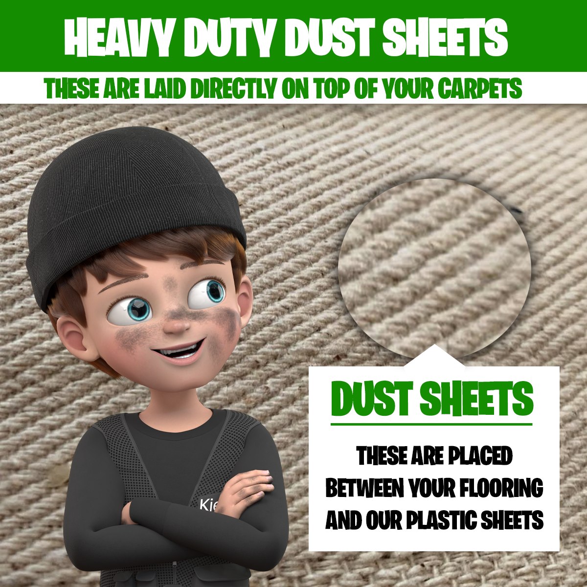 The cotton sheets are first laid directly onto your carpet from door to appliance.